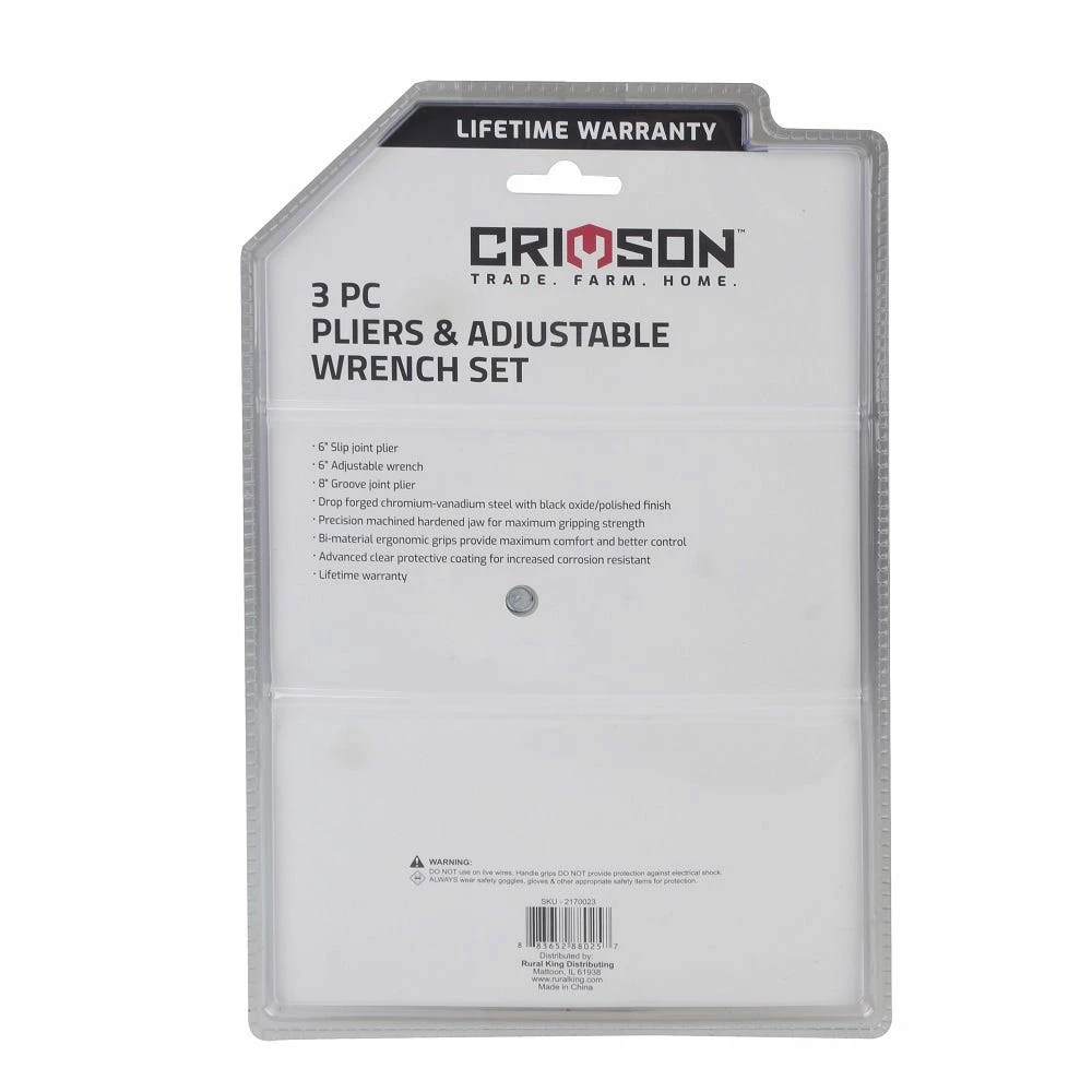 - The Crimson Force 3-Piece Pliers and Adjustable Wrench Set (CT-2432-017) is designed for professionals and DIY enthusiasts, offering durability and precision in every use.