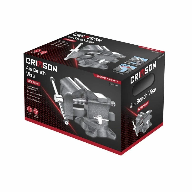 - The Crimson Force 4″ Workshop Vise (Model 7059110) is a heavy-duty bench clamp designed for precision and durability, ideal for all your workshop needs.